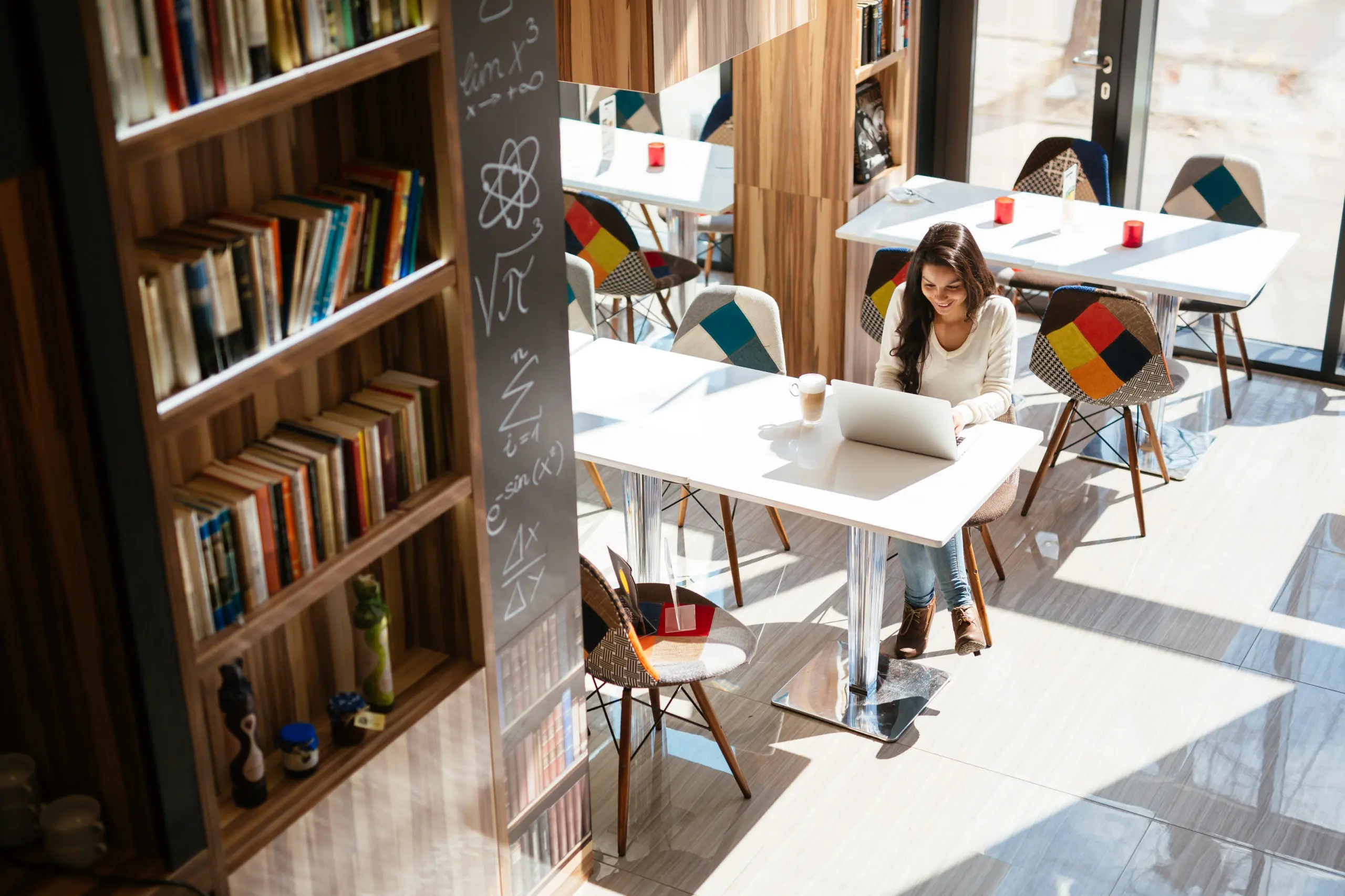 Original size is 2560 × 1707 pixelsBeautiful young cute brunette studying on notebook